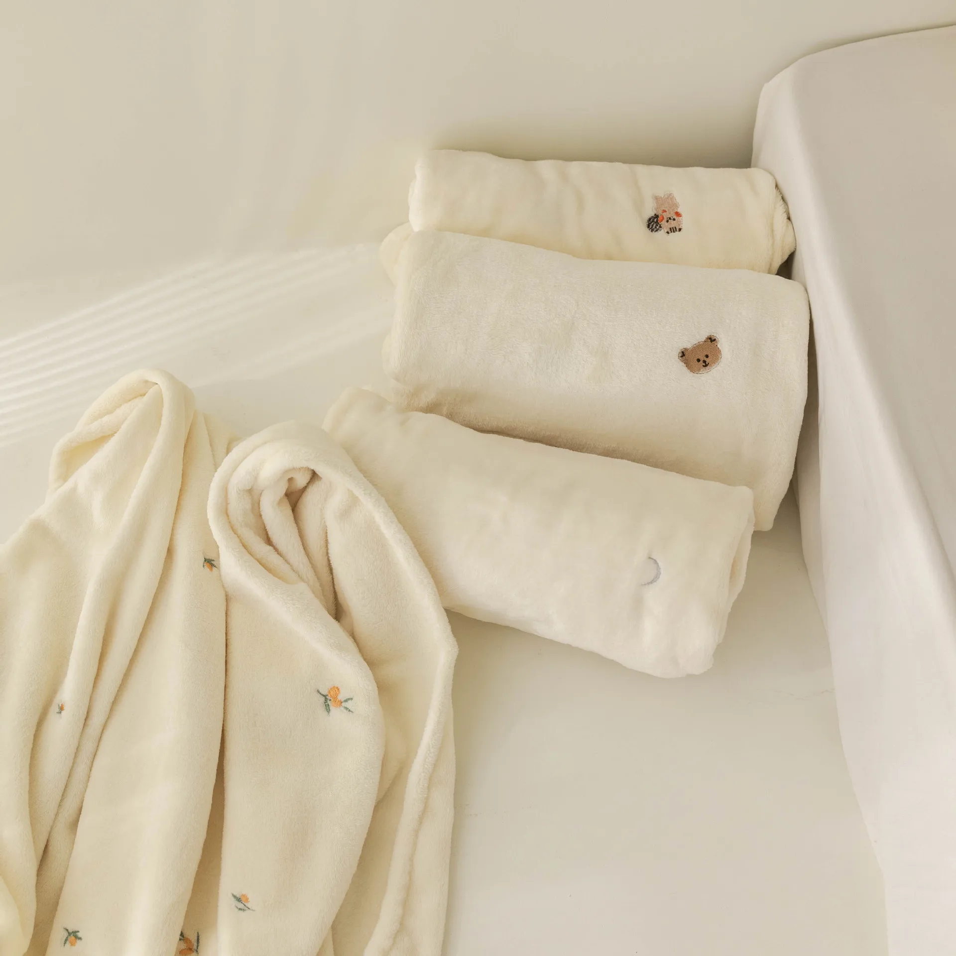 Fleece Baby Blanket Newborn Autumn Winter Swaddling Blankets Soft Warm Stroller Cover Bedding Bear Embroidery Babies Accessories